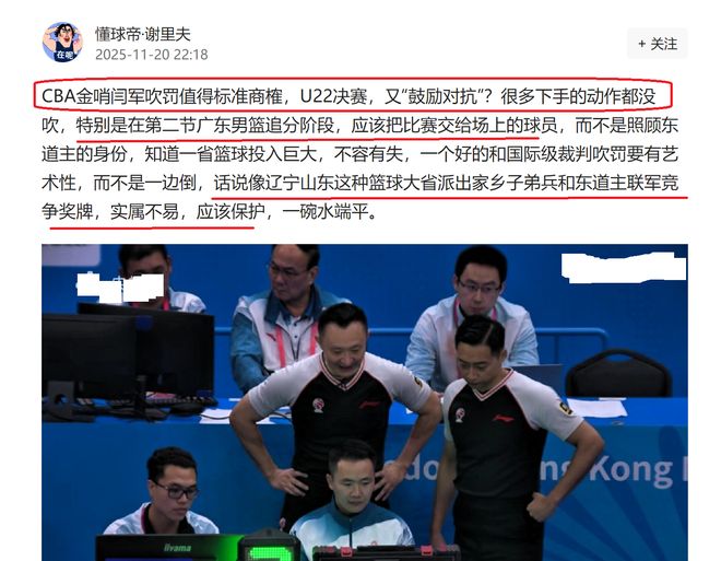 不服!广东U22男篮夺冠,辽宁球迷:第二节比赛存在主场哨,闫军的哨声帮助了广东队,山东队2次进攻犯规,影响了比赛走向……